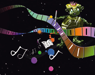 Gnirut, un monstre codeur. © S. Auvin Ce personnage incarne la « machine de Turing ». Cette « machine » n’existe pas réellement, c’est un modèle qui permet d’étudier l’informatique et sur lequel se base le fonctionnement des ordinateurs.